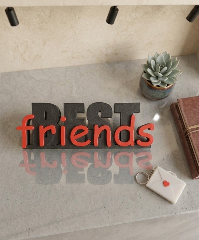 Premium 3D Design: Ek unique layered design jisme "BEST" (Bold Black) aur "friends" (Vibrant Red) ka perfect combination hai. Yeh kisi bhi table, shelf, ya workstation par ek statement piece ki tarah lagta hai.